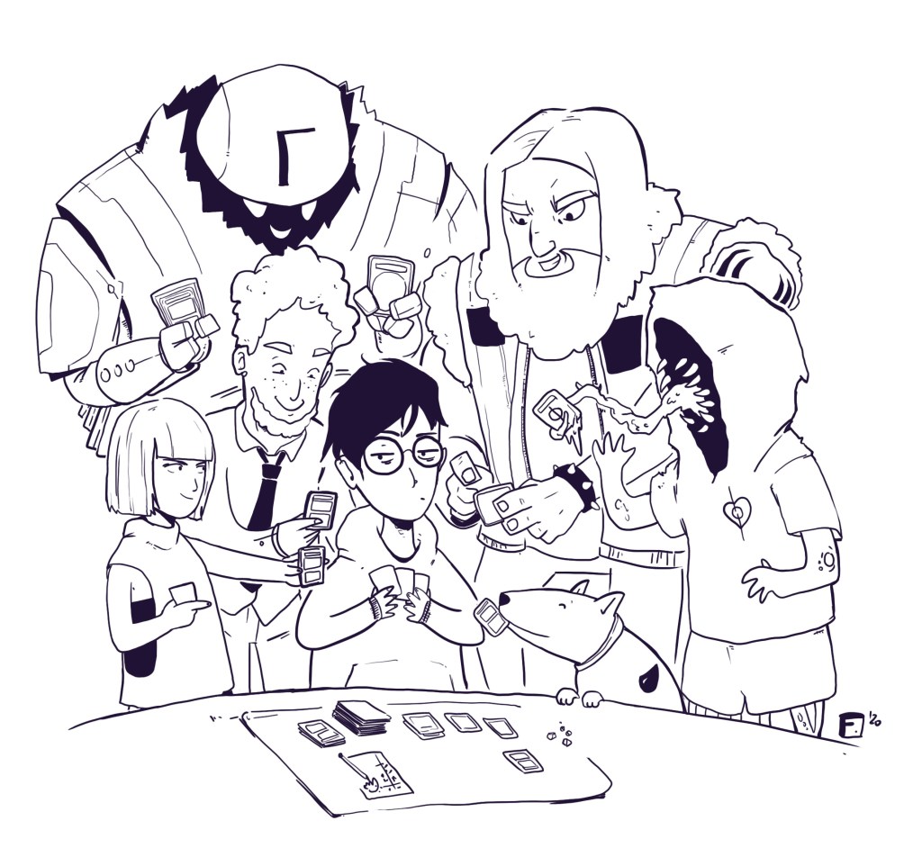 The WUBRGs is a fictional universe, but it wouldn’t be possible without my amazing MtG playgroup, specially Josh, Vuk, Michi, Stephan, Ted, Mu, Lanz, Max, Kevin and Gata, with their amazing feedback and ideas for the comic. Also our Boardgame group, Robi, Shunsen, Phil, Jan and René, has a big influence in this project. They will join from time to time also for some strips, so be aware!;)